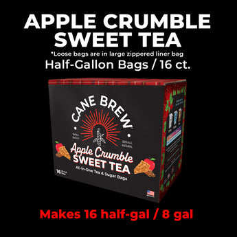 Contains 16 half-gallon size bags of Cane Brew™ all-in-one tea and sugar bags. (Makes 16 1/2 gal. pitchers or 8 gallons.)